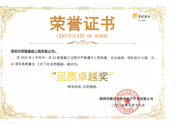 羅湖湖貝a2樁基礎(chǔ)工程榮獲“品質(zhì)卓越獎(jiǎng)”、“進(jìn)度先進(jìn)個(gè)人”及..?[公司動(dòng)態(tài)]